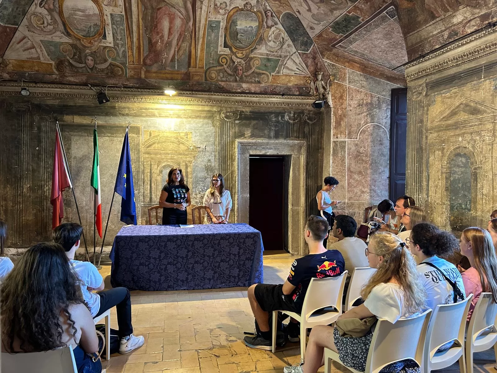 Studenti e studentesse Erasmus+La nostra scuola è entrata a far parte del Consorzio (DM61/2023) PNRR_2023-1-IT02-KA121-SCH-000139080 nell’ambito dell’Erasmus+. Si tratta di un’occasione di scambio culturale e mobilità che ha iniziato a prendere forma nell’a.s. 2023/2024, con il Beisenkamp Gymnasium di Hamm, Germania. Studenti e docenti della scuola tedesca sono venuti la prima volta in visita a Zagarolo nel giugno 2024, portando avanti un progetto sull’ecosostenibilità piantando un olivo nella nostra scuola, simbolo di pace ed ecologia. Quest’anno si è ripetuta l’ospitalità qui a Zagarolo e i ragazzi hanno lavorato sull’importanza dello stato, delle sue funzioni, facendo un dibattito che ha spaziato dall’antichità (traducendo dal latino un estratto della Res Publica di Cicerone) ad oggi, mettendo a confronto anche i diversi sistemi politici. Hanno incontrato le autorità locali, facendo anche una visita guidata a Palazzo Rospigliosi, insieme all’assessora Antonella Caspoli.